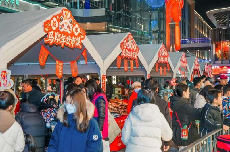 “半天逛下来,意犹未尽,夜晚更热闹……”市民李先生带着孩子一边观看马派皮影戏,一边给孩子讲解中国的年俗文化,“这里是中国的福字,贴的时候要倒过来贴,寓意‘福到了’。”
